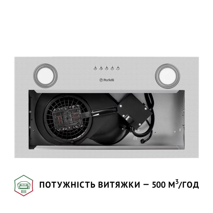 Кращі матеріали та технології об'єднані у витяжці Perfelli BI 5022 LED. При потужності з вільним виходом повітря в 500 м3/год вона очищує повітря від запахів та випарів під час та після приготування страв, а також підтримує свіжість у приміщенні.
