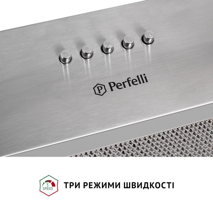Кухонна витяжка Perfelli BI 5022 LED працює на трьох швидкостях, що дозволяє обирати потрібну інтенсивність очищення повітря, залежно від його забрудненості.