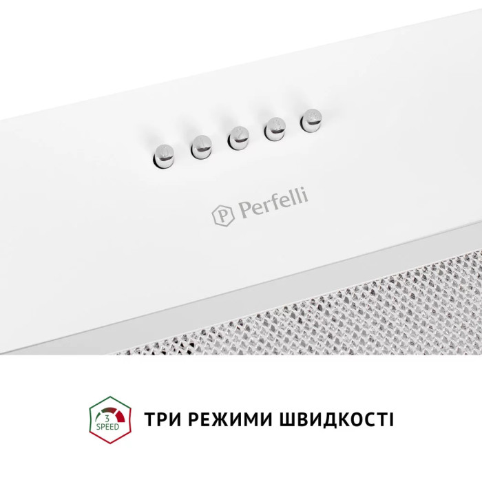 Кухонна витяжка Perfelli BI 5022 LED працює на трьох швидкостях, що дозволяє обирати потрібну інтенсивність очищення повітря, залежно від його забрудненості.
