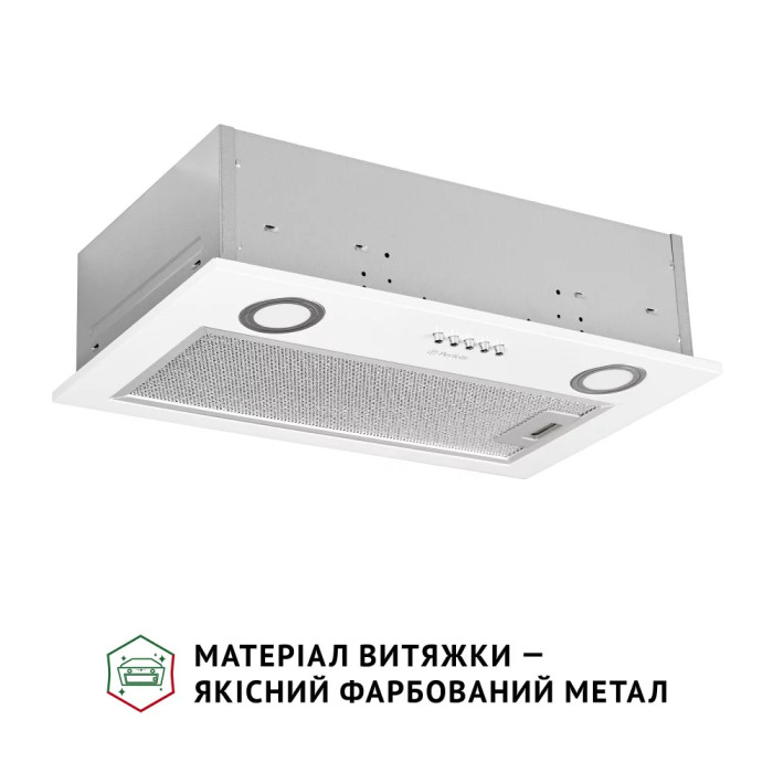 Ми пропонуємо повновбудовувану модель витяжки, яка поєднується з будь-яким дизайном, не порушуючи гармонії інтер'єру. У більшості випадків кухонна витяжка монтується в навісну шафу, тому основні елементи витяжної конструкції є непомітними.