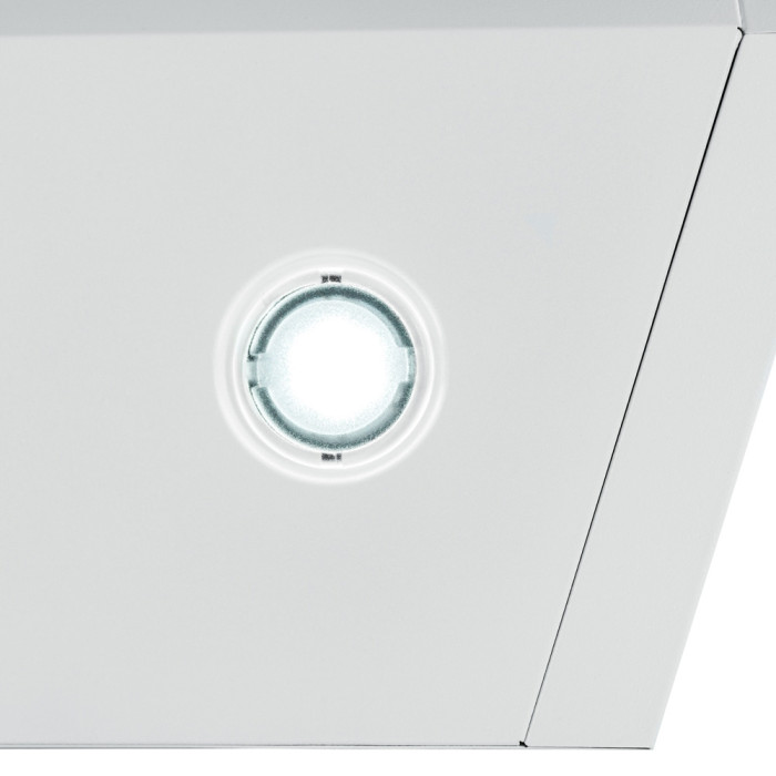 Освітлення витяжки складається з двох LED-ламп, потужністю 1 Вт кожна, які розташовані на нижній стороні витяжки та сприяють кращому освітленню робочої поверхні. Підсвічування є комфортним для очей і працює як додаткове джерело освітлення на кухні. Робочий ресурс світлодіодів у рази вищий, ніж у звичайних ламп, а споживання енергії мінімальне. Крім того, світлодіоди досить витривалі під час активної експлуатації.