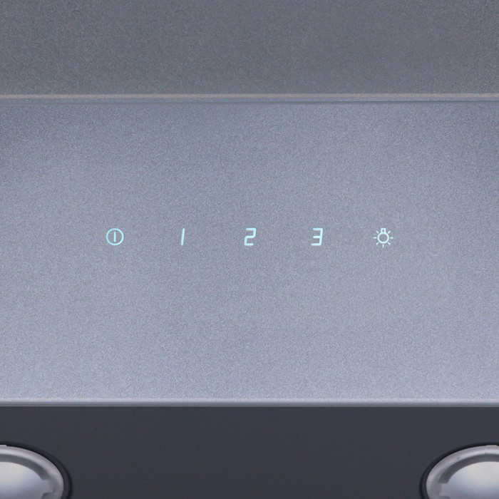 Керувати витяжкою зручно та легко! Сенсорна панель управління складається з кнопок для перемикання швидкостей та увімкнення/вимкнення освітлення. Практичне розташування сенсорних кнопок керування на передній панелі дозволить швидкі маніпуляції з пристроєм без зайвих зусиль.