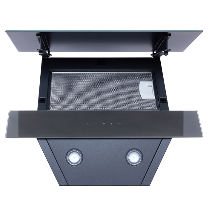 Під верхньою декоративною панеллю витяжки розташований тришаровий жировий алюмінієвий фільтр, що захищає деталі пристрою від потрапляння жиру та випаровування.