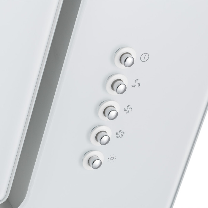 Ця витяжка належить до класу похилих, отже, не займе багато кухонного простору. Вона виготовлена із металу, який покритий шаром фарби. Дане колірне рішення не просто робить витяжку елегантною, а й зручною у використанні. Дверцята витяжки виконані з товстого гартованого скла, яке виконане в єдиному з корпусом дизайні.