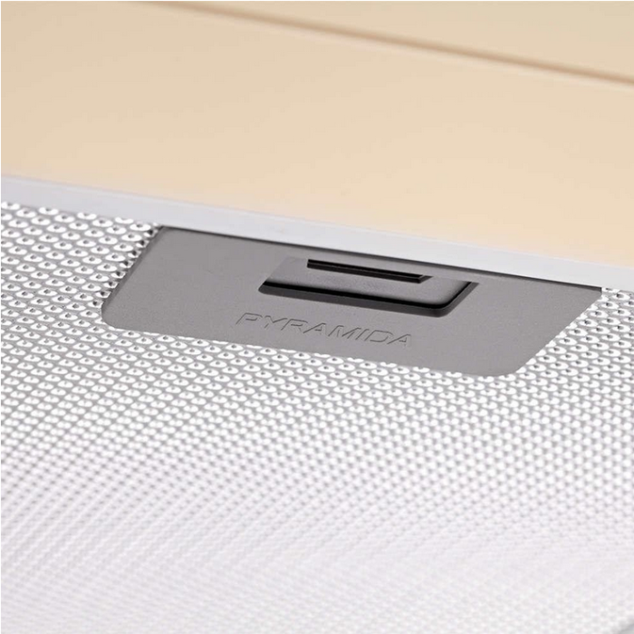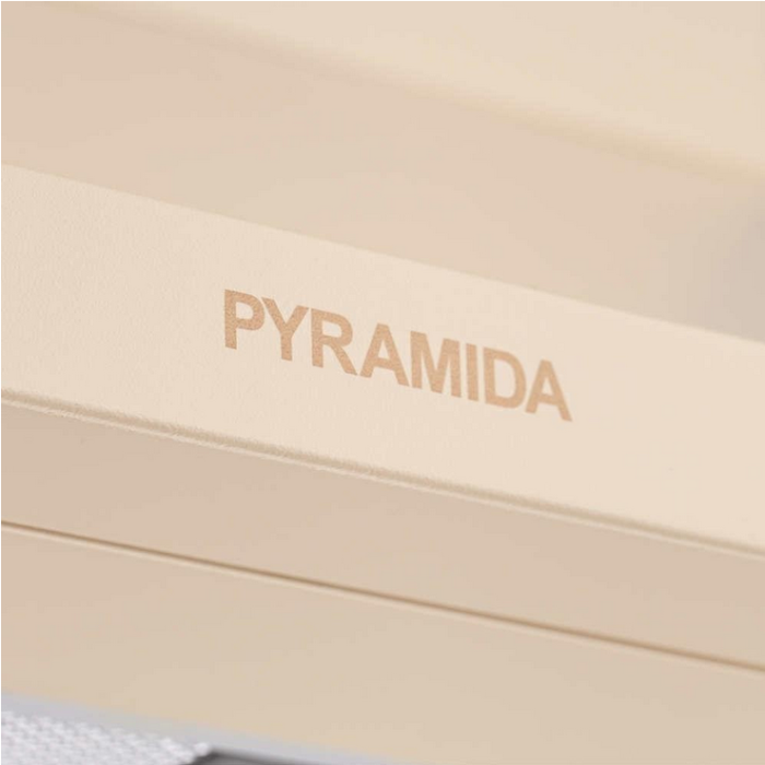 У такій витяжці як Pyramida KH 60 вдало поєднується сучасний стильний дизайн і хороша функціональність. Pyramida KH 60 являє собою настінну витяжку купольного типу, шириною 600 мм, має один потужний двигун, який здатний забезпечити максимальну продуктивність 700 куб.м/год. Вона може використовуватися як з проточним очищувачем повітря, так і в режимі рециркуляції повітря, однаково добре очищаючи від неприємних запахів і ефективно вловлюючи навіть найдрібніші частинки жиру, завдяки наявності п'ятишарового алюмінієвого фільтра. Не можна не відзначити і те, що Pyramida KH 60 передбачена опціональна установка вугільного фільтра тонкого очищення, а також наявність кнопкового управління для вибору однієї з трьох пропонованих швидкостей і використання додаткового освітлення над варильною поверхнею, що складається з 2 галогенових ламп по 40 Вт.