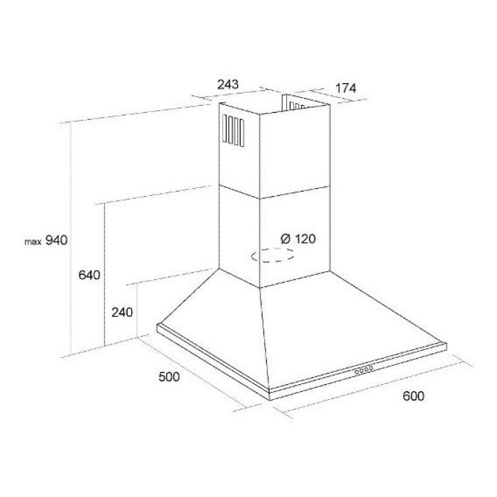 Якісна настінна витяжка купольного типу Pyramida KH 50 white швидко очистить приміщення від неприємних запахів і перешкоджатиме подальшому поширенню жиру в районі варильної поверхні, в цьому їй допоможе надійний мотор з високою продуктивністю 600 куб.м/год. При виборі Pyramida KH 50 white слід враховувати її ширину, яка відповідає 500 мм, та діаметр отвору повітроводу, що становить 120 мм. Ця модель працює як у режимі рециркуляції, так і відведення, має п'ятишаровий алюмінієвий фільтр грубої очистки та передбачає можливість використання вугільного фільтра як опції. Варто відзначити і наявність у Pyramida KH 50 white стандартних функцій, таких як регулювання за допомогою простого кнопкового управління швидкісних режимів у трьох позиціях та наявність освітлення, що забезпечується двома галогеновими лампами по 40 Вт кожна.