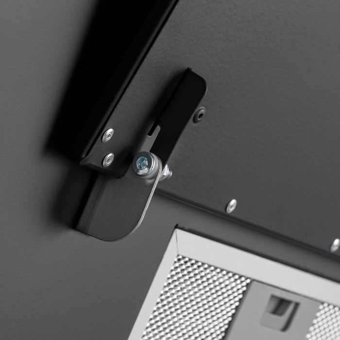 Проста, але елегантна витяжка NL – справжній ironman асортименту похилих витяжок. Справа в тому, що і короб, і корпус, і дверцята витяжки виготовляються із забарвленого металу.