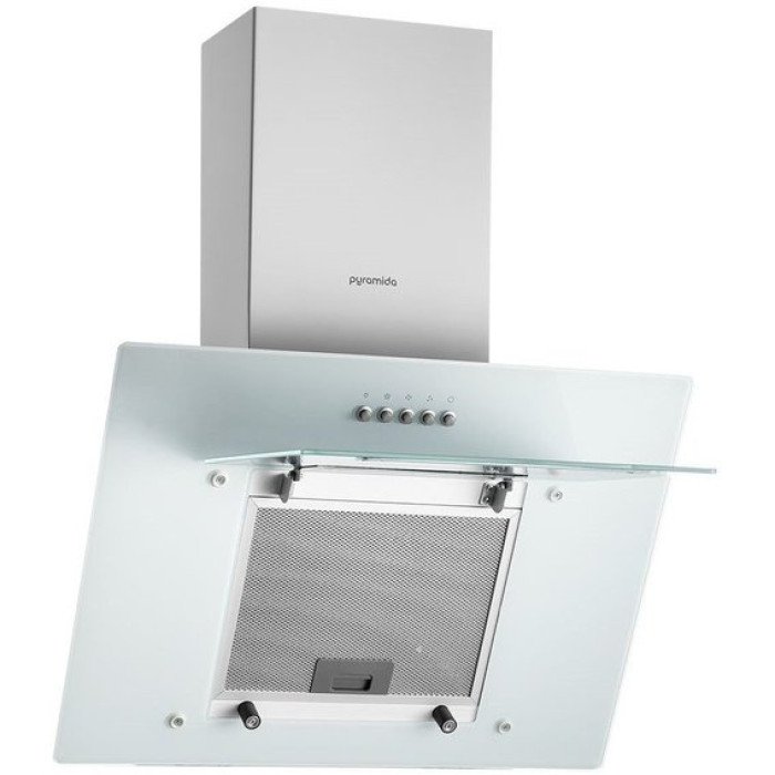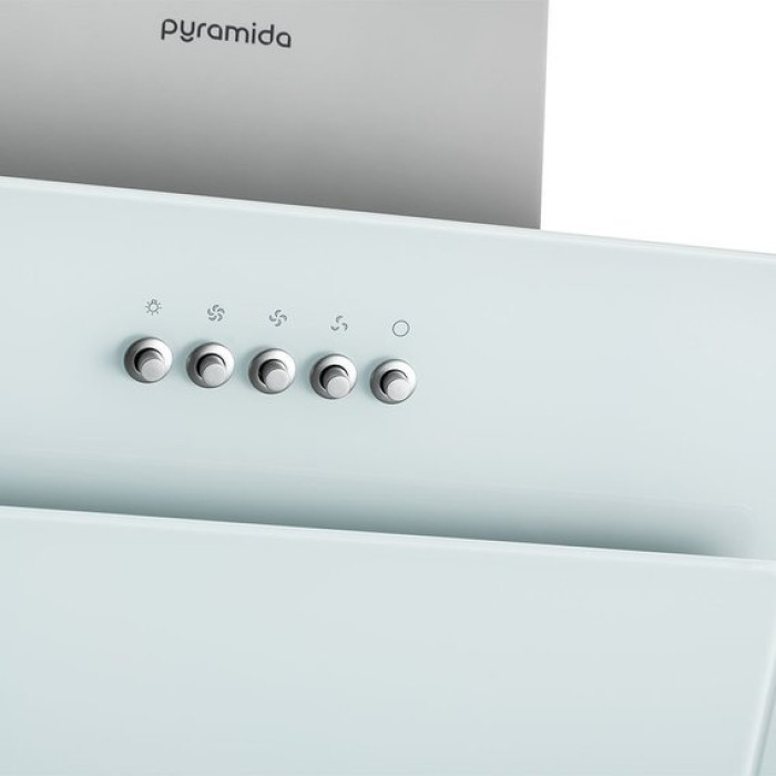 Універсальність витяжки Pyramida NR 60 РК white забезпечує відмінну можливість працювати у двох режимах – проточному та режимі рециркуляції, а досить великий діаметр повітроводу та двигун потужністю 110 Вт гарантують високу продуктивність до 700 м3 на годину.Витяжка Pyramida NR 60 РК white монтується прямо на стіну, а наявність широкого «купола» дозволить максимально охопити повітряний простір кухні.Управління Pyramida NR 60 white здійснюється за допомогою кнопок, а чудовим доповненням до простого керування стане наявність двох LED лампочок.