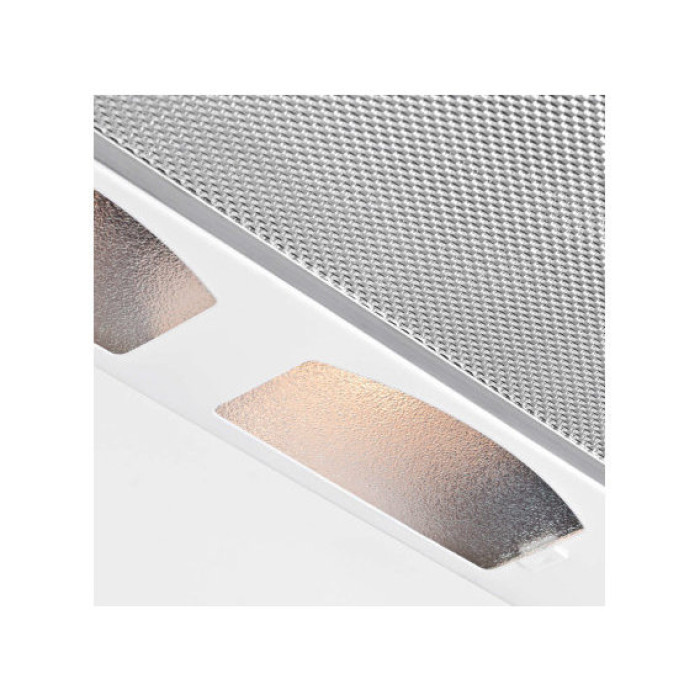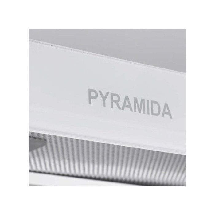 Вбудована витяжка Pyramida TL 50 FG IX WH має унікальні зовнішні характеристики і здатна органічно вписатися в будь-який меблевий гарнітур. Оригінальний декор ручки білим склом, зручна форма зі скошеними краями та відсутність рамки створюють приголомшливий ефект, пристрій виглядає солідно та сучасно.