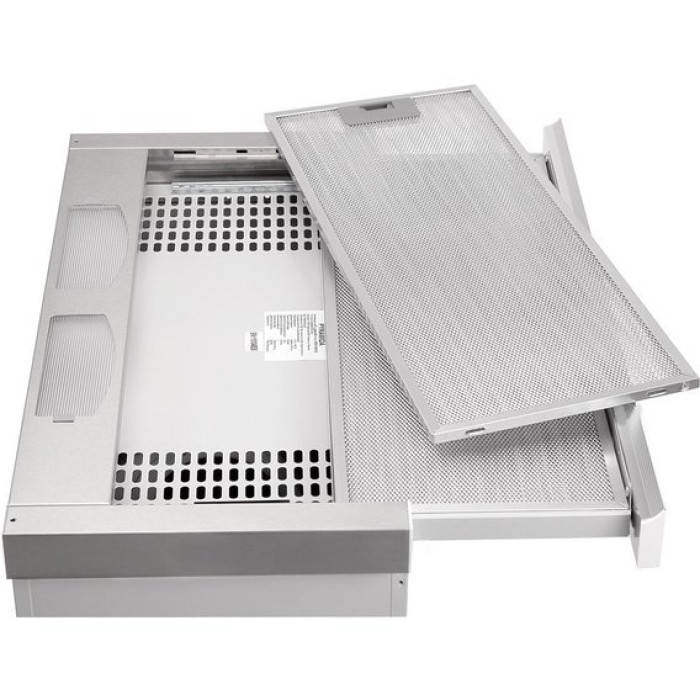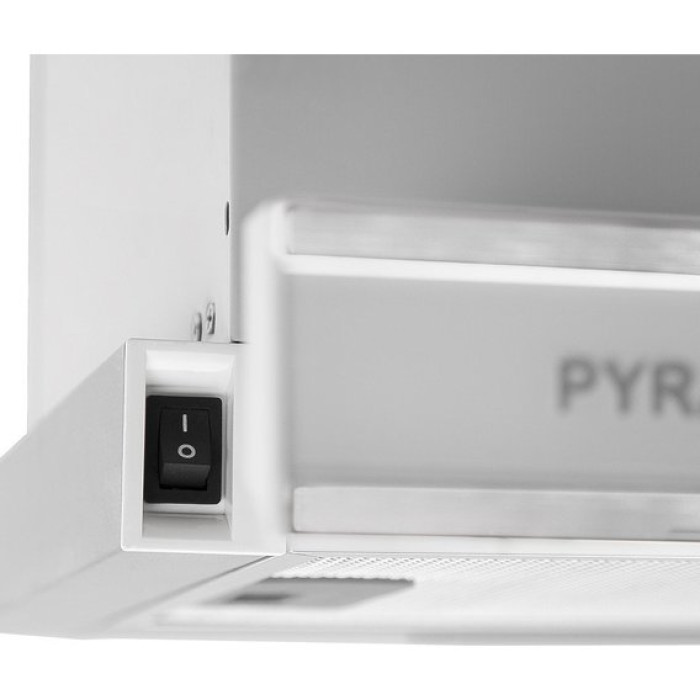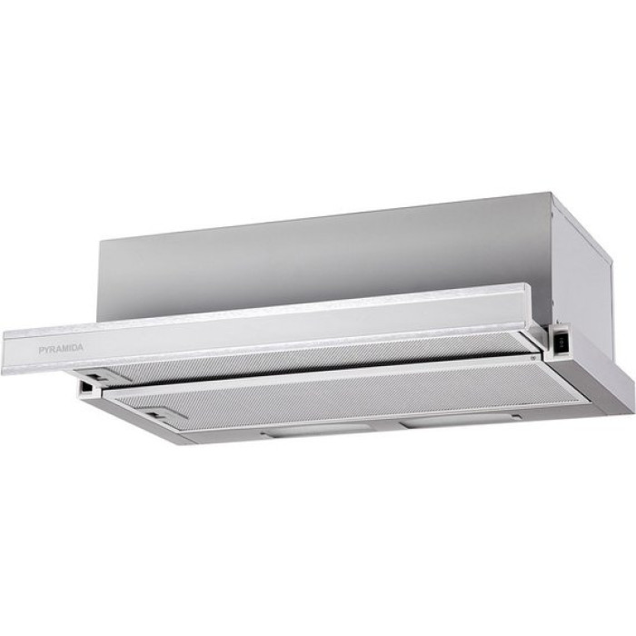 Телескопічна витяжка Pyramida TL Glass 50 /TL Glass 60 повністю вбудовується в підвісну шафку над варильною поверхнею (або плитою), видимою залишається лише фронтальна планка висувної каретки. Ще одна корисна деталь: у шафці, в яку вбудовується витяжка, залишається місце для зберігання речей. Висувна панель з другим жировим фільтром збільшує площу забору повітря та полегшує керування витяжкою. Кнопки включення двох швидкісних режимів та освітлення розташовані по обидва боки від висувної панелі. Продуктивність телескопічної витяжки Pyramida TL Glass 50 /TL Glass 60 - 700 м3/ч. Рівень шуму звичайний, проте шум майже не чутний, оскільки витяжка закрита у шафці. Особливість витяжки в тому, що передня декоративна панель прикрашена чорним склом, завдяки чому вона чудово поєднується зі склокерамічною поверхнею, газом на склі та скляними елементами на духових шафах.