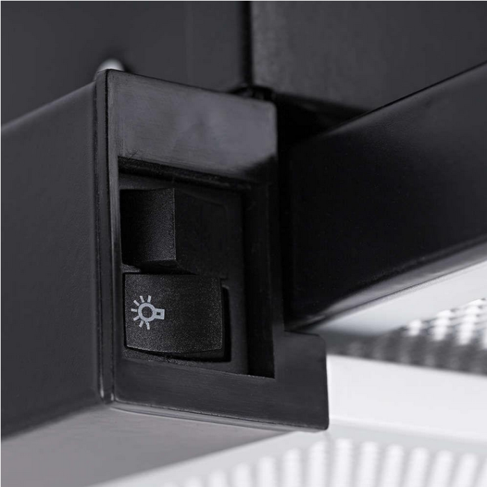 Pyramida TL 60 (1100) black відрізняється високим показником продуктивності та максимальною простотою в керуванні.Вона вбудовується безпосередньо в кухонну шафку над газовою або електричною плитою, може працювати як проточна модель з відведенням повітря з приміщення у вентиляційну систему будинку, або як витяжка з рециркуляцією, має висувну панель.У базовому комплекті постачання виробник передбачив жировий фільтр та антиповоротний клапан.Вугільні фільтри для функціонування у другому режимі купуються окремо за додаткову плату.Pyramida TL 60 (1100) black має 3 швидкості і оснащена двома потужними лампами.За годину вона здатна очистити до 1100 м3.повітря.