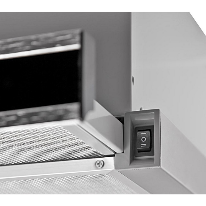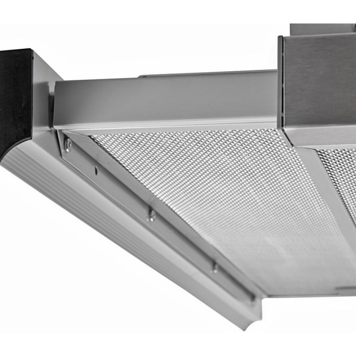 Чудова вбудована витяжка Pyramida TL glass inox black/N оснащена телескопічною панеллю, завдяки якій Ви легко зможете збільшити площу захоплення насиченого неприємними запахами, жиром та іншими шкідливими для здоров'я мікрочастинками повітря. Для забезпечення високої продуктивності на рівні 700 м3/година Pyramida TL glass inox black/N передбачений повітропровід з діаметром отвору в 120 мм. Витяжка може відмінно працювати на одній з двох швидкостей завдяки якісній роботі одного мотора, при цьому створюється мінімальний рівень шуму в 60 дБ. П'ятишаровий алюмінієвий фільтр забезпечить високу якість очищення повітря та тривалу, безвідмовну роботу витяжки. Pyramida TL 60 Glass black забезпечить не тільки чисте повітря, але й завдяки стильній прикрасі передньої декоративної панелі чорним склом, додасть вишуканості в інтер'єр кухні.