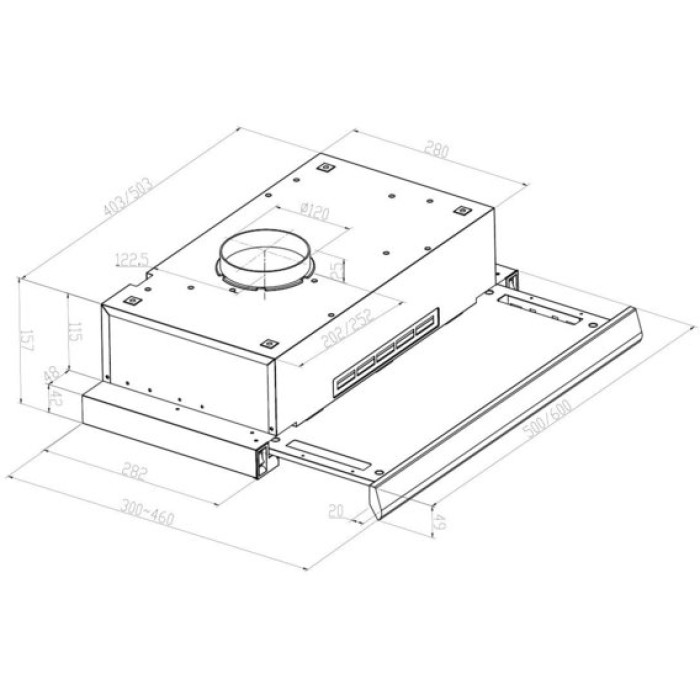 Проста та інтуїтивно зрозуміла панель управління забезпечить комфорт експлуатації витяжки. Ергономічні механічні клавіші допоможуть вам швидко перемикатися між швидкостями та режимами роботи, а також увімкнути підсвічування.
