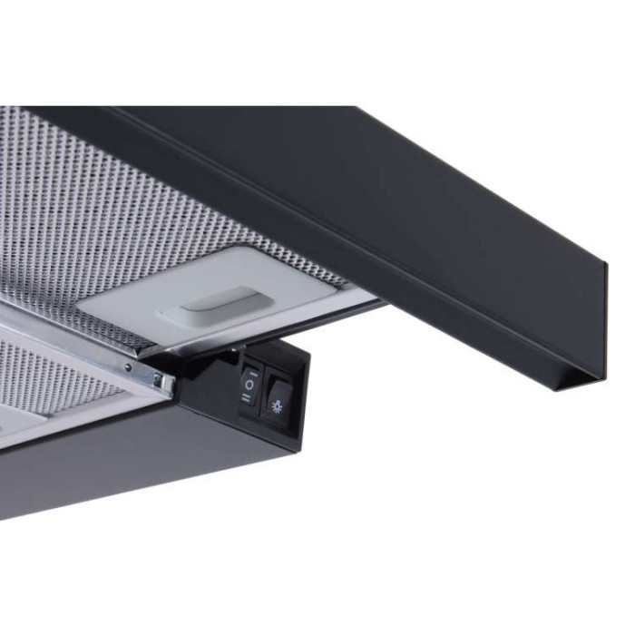 Головна особливість моделі Garda 60 BK (450), як і будь-якої телескопічної витяжки, полягає у способі встановлення. Завдяки майже повному розміщенню в навісній шафці, витяжка майже невидима в інтер'єрі. У неактивному стані Ви бачитимете лише невелику планку чорного кольору, а в активному – передню висувну панель.