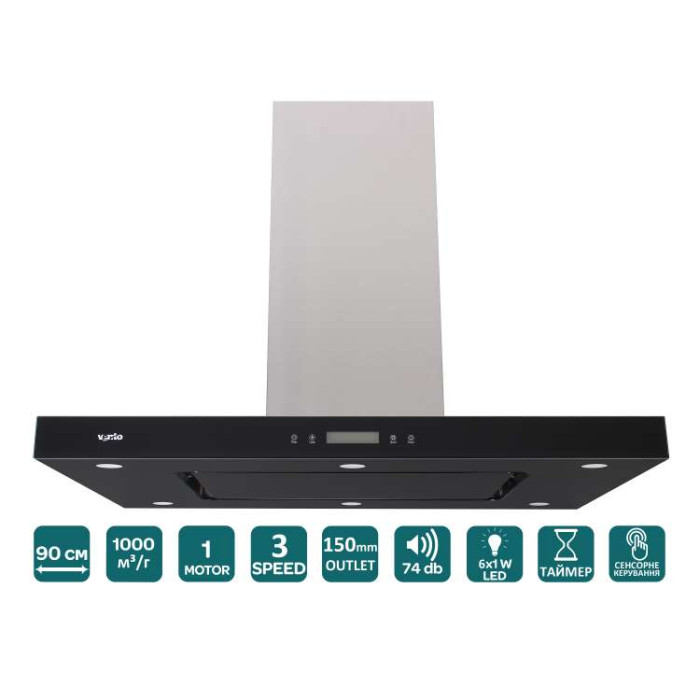 Острівна витяжка Isola Italia BG 1000 якісно вирізняється серед колекції острівних витяжок від Ventolux. Насамперед, за рахунок незвичайного та класичного поєднання матеріалів: нижня частина витяжки виготовлена з чорного скла, а верхня – з нержавіючої сталі. Не менш стильно виглядає сенсорне керування, розташоване на передній скляній панелі.