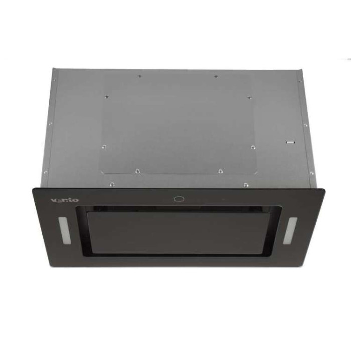 Модель вбудовується в кухонні меблі замість днища, таким чином видимим для Вас залишиться тільки її низ, який покритий склом. Також на склі знаходиться зручне сенсорне керування з невеликим цифровим дисплеєм. Є відмінність від інших моделей і розташування світильників – вони розміщені ліворуч і праворуч на бічних панелях, що дозволяє більш ефективно освітлювати робочу зону.