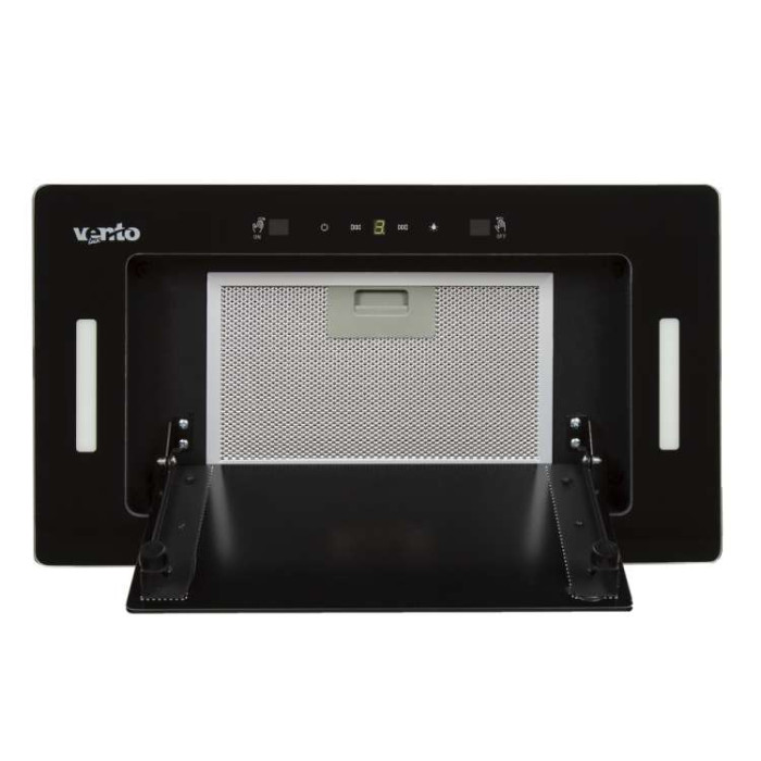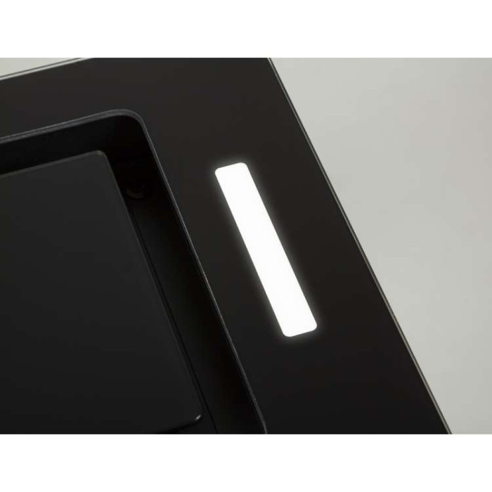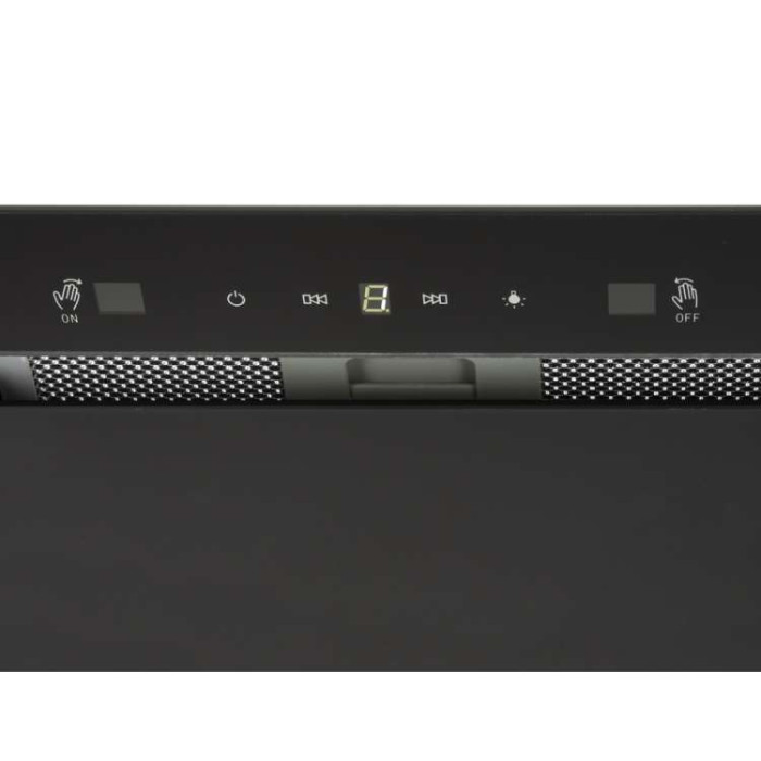 Особливості врізної витяжки PUNTO 52 BG (1200) TC MS – гарний декор нижньої частини чорним склом, сенсорне керування, керування жестами, наявність функції таймер та розташування led-ламп з боків нижньої частини моделі.
