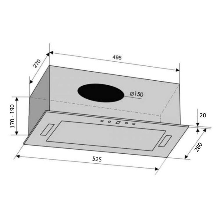 Витяжка вбудована PUNTO 52 WH (950) PB - раціональне рішення для невеликих, середніх і навіть великих кухонь, адже витяжка вбудовується в шафку і не займає зайвого місця, має доступну ціну і високу продуктивність.