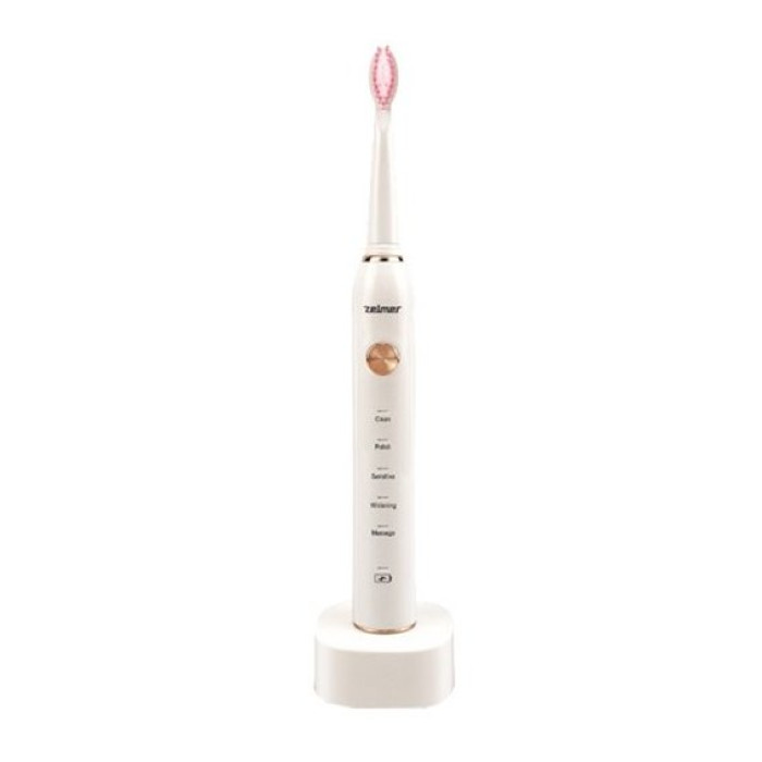 Звукова зубна щітка ZELMER ZTB1010W робить 18 000 коливань за хвилину і має 5 режимів роботи. Акумулятора вистачає на 45 днів (при використанні двічі на день по дві хвилини). Через 2 хвилини після чищення зубів пристрій автоматично вимкнеться. У комплект із щіткою входять дві змінні насадки.