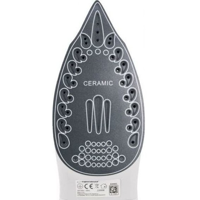 Праска Esperanza Iron EHI002 має продуманий дизайн, який відрізняється не тільки чудовим зовнішнім виглядом, а й якісною ергономікою. Великий резервуар для води має широкий заливний отвір. Зручна рукоять дозволить чіпко взяти виріб і не впустити. Акуратний тонкий носик полегшує проходження складок. Керамічна підошва стала чудовим варіантом розгладження заломів без необхідності повторної проходки. За рахунок того, що кераміка рівномірно і швидко розігрівається, вона впливає рівної температури, тому, вибравши правильний режим, ви швидко досягнете результату.