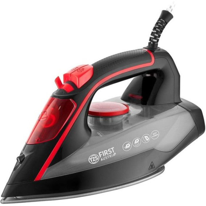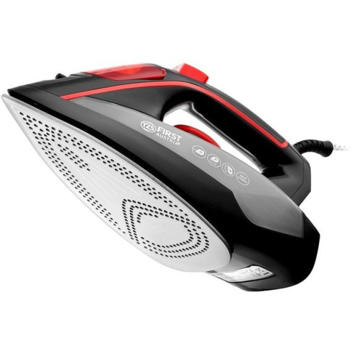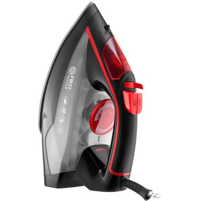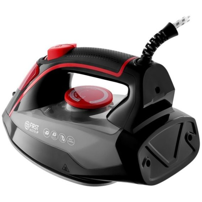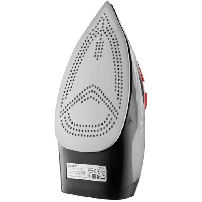 Парова праска First FA-5618-6-RE оснащена продуктивною паровою системою та керамічною підошвою. Праска легко справляється з будь-якими складками та зам'ятістю вже за один прохід. Паровий удар дозволяє швидко розгладити речі з джинсу та льону. Для максимального комфорту праска оснащена довгим шнуром, який не заплутується під час прасування і дозволяє дотягнутися до будь-якого місця на дошці для прасування. Потужність 2200 Вт забезпечує швидке нагрівання підошви, вже через кілька секунд після включення в мережу праска готова до роботи. Підошва зі спеціальним покриттям легко ковзає по будь-якій тканині, не залишаючи білих слідів і складок. Підошва відрізняється високою стійкістю до утворення подряпин та потертостей. Носик підошви має загострену форму, це допомагає при прогладжуванні кишень, рюшів, виточок, місць навколо ґудзиків. Вбудована функція очищення від накипу дозволяє заливати у праску воду прямо з-під крана. При самоочищенні накип ефективно видаляється з внутрішніх поверхонь, не осідаючи на робочих частинах праски.