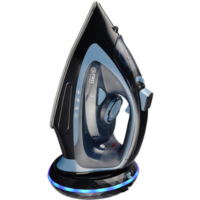 Праска бездротова FIRST FA-5633-4 потужність 2400 Вт, підошва з керамічним покриттям, вертикальне відпарювання, функція розбризкування, регулятор подачі пари, паровий удар, сухе прасування, протикрапельна система, система захисту від накипу, система самоочищення.