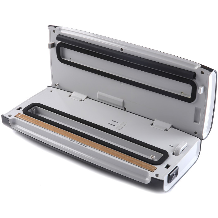 Корпус пристрою виготовлений з металу та пластику, що забезпечує його довговічність та міцність. Компактні габарити 37.5х15.5 см роблять його зручним для зберігання навіть на невеликій кухні. У комплекті поставляється рулон пакетів розміром 20х200 см для зручного старту використання.