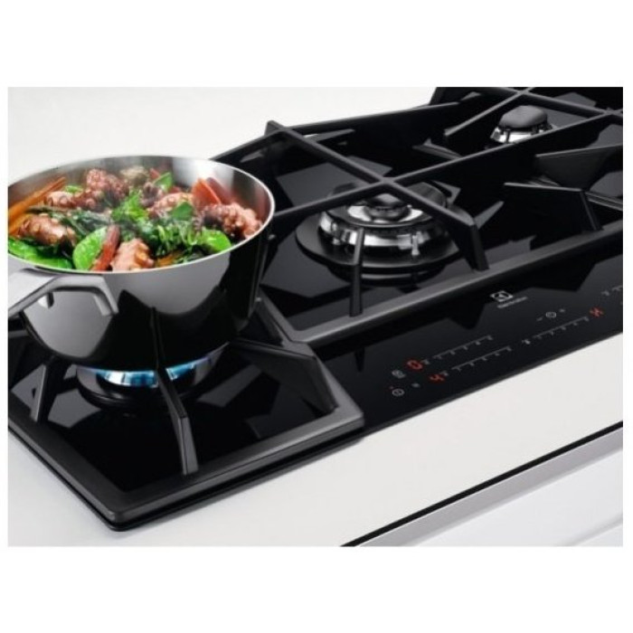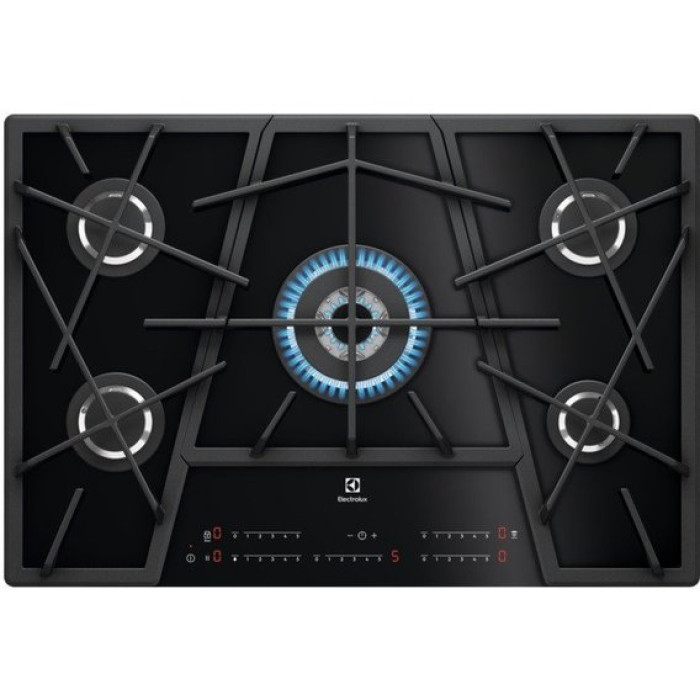 Варочная поверхность Electrolux KGV7539IK- тип газовой, независимой установки со стильным, современным дизайном. Поверхность - «Газ на стекле». Стекло чёрное. Стекло легко моется и сохраняет привлекательный вид. Без рамочная конструкция. Ширина составляет 75 см. Легко впишется в любой интерьер кухни. Отдельно стоящие чугунные, решётки необычной формы, дополняют стиль оформления, легко моются и говорят о долговечности. Чугун - сплав железа с углеродом, из которого изготовлены чугунные решётки, долго держат и отдают тепло. Цвет светодиодов - красный. Занимает минимум пространства кухни. Безопасность Функция Hob2hood регулирует вытяжку с Варочной поверхности Electrolux KGV7539IK. Благодаря функции блокировки - защиты от детей, используйте безопасно, не переживая о детях. Газ контроль. Технические Особенности Варочные поверхности Electrolux KGV7539IK - встраиваемые. Максимальная мощность газа - 10.5 кВт. Работает от сети. Номинальное напряжение 230 В. Таймер и сенсорное управление оставляют приятные впечатления при работе с поверхностью. Подача звукового сигнала делает более удобным и практичным процесс приготовления пищи. Индикация остаточного тепла на дисплее. Положение панели управления: спереди посредине. Количество конфорок - 5 штук разного размера.