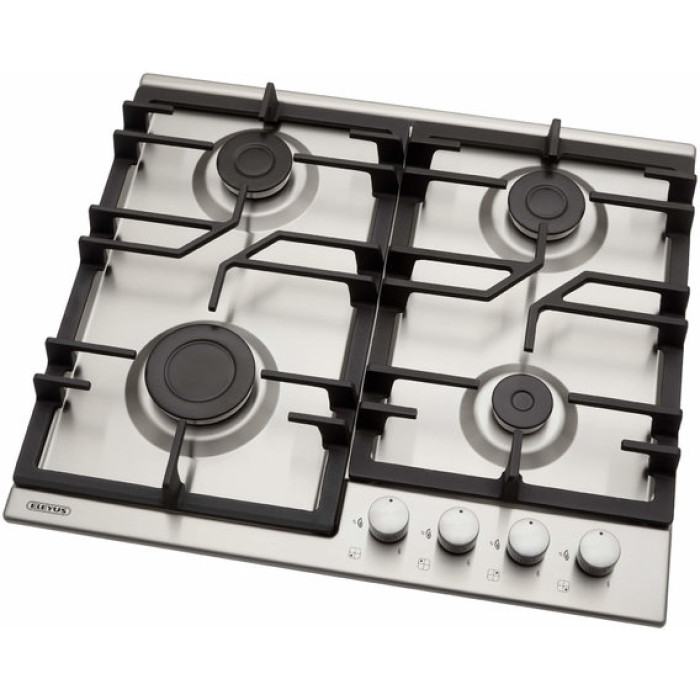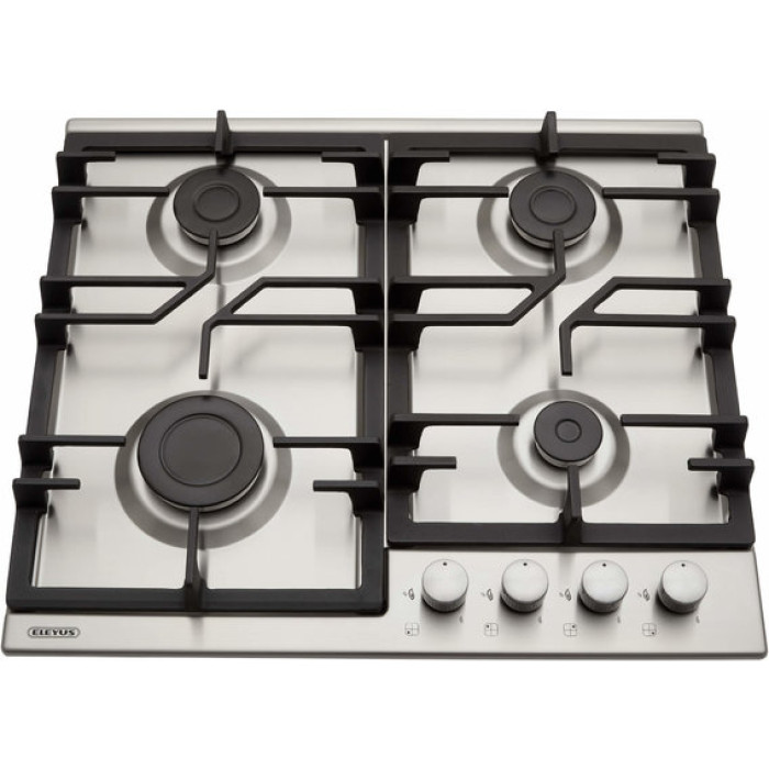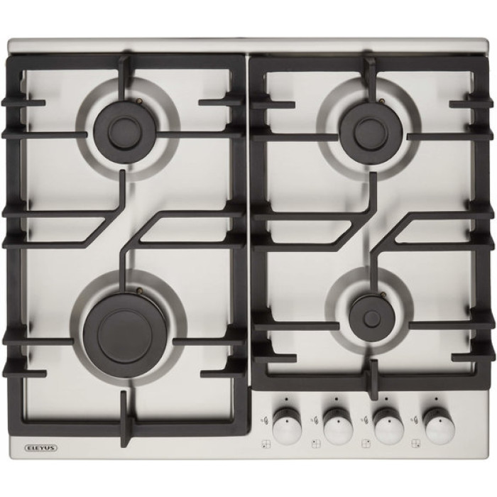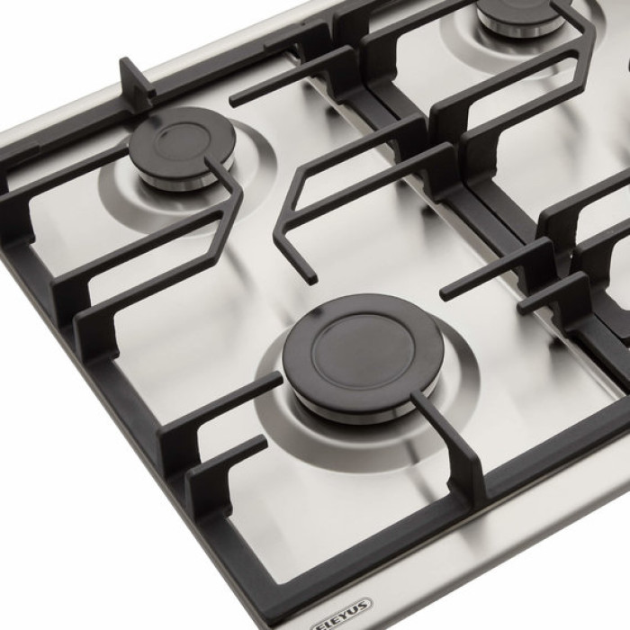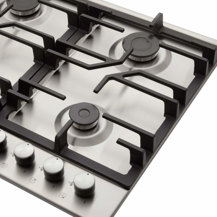 Газовая поверхность оборудована четырьмя конфорками: быстрой (2,9 кВт), двумя полубыстрыми (1,7 кВт каждая) и вспомогательной (0,9 кВт). Разный размер и мощность позволяют выбрать подходящую конфорку для быстрого нагрева воды, поджаривания блюда или тушения на медленном огне.