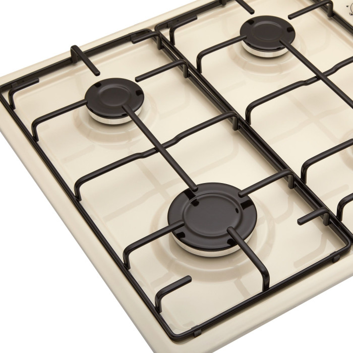 Поверхня газової варильної поверхні ELEYUS NOTA 60 EF виготовлена з високоякісного емальованого металу, який є довговічним, зберігає естетичний вигляд протягом тривалого часу та легкий у догляді. Поверхня обладнана двома емальованими металевими ґратами, які є міцними та стійкими до прогоряння, а також зручними у догляді.