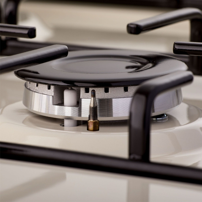Газова варильна поверхня ELEYUS NOTA EF продумана та ергономічна, що так важливо для щоденного приготування їжі. Ручки управління розташовані праворуч від пальників, на безпечній відстані від допоміжного пальника. Ручки розташовані праворуч від решіток, що унеможливлює їх контакт з гарячим посудом і запобігає нагріванню. Крім того, швидка конфорка розташована спереду зліва, що дозволяє використовувати посуд великих об'ємів та захищає поверхню стіни від нагрівання. Електрозапалювання з керуванням у ручці – це зручно, сучасно та безпечно.