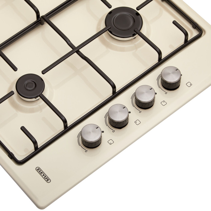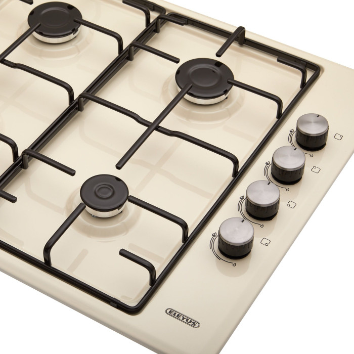 Сучасні газові поверхні ТМ ELEYUS – гарантія безпеки вашого будинку. Газ-контроль вимикає подачу газу у разі випадкового загасання полум'я. Поворотні перемикачі блокуються і унеможливлюють випадкове включення (для включення слід натиснути на перемикач і повернути його) і тим самим роблять користування приладом безпечнішим. Для підтвердження високої якості та безпеки у використанні всі газові варильні поверхні ТМ ELЕYUS проходять чотирирівневий контроль герметичності з'єднань газової арматури на різних етапах виробництва.