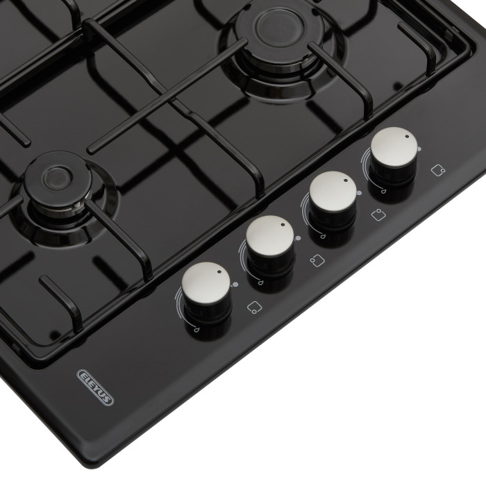 Сучасні газові поверхні ТМ ELEYUS – гарантія безпеки вашого будинку. Газ-контроль вимикає подачу газу у разі випадкового загасання полум'я. Поворотні перемикачі блокуються і унеможливлюють випадкове включення (для включення слід натиснути на перемикач і повернути його) і тим самим роблять користування приладом безпечнішим. Для підтвердження високої якості та безпеки у використанні всі газові варильні поверхні ТМ ELЕYUS проходять чотирирівневий контроль герметичності з'єднань газової арматури на різних етапах виробництва.