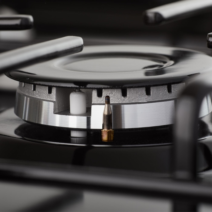 Газова варильна поверхня ELEYUS NOTA EF продумана та ергономічна, що так важливо для щоденного приготування їжі. Ручки управління розташовані праворуч від пальників, на безпечній відстані від допоміжного пальника. Ручки розташовані праворуч від решіток, що унеможливлює їх контакт з гарячим посудом і запобігає нагріванню. Крім того, швидка конфорка розташована спереду зліва, що дозволяє використовувати посуд великих об'ємів та захищає поверхню стіни від нагрівання. Електрозапалювання з керуванням у ручці – це зручно, сучасно та безпечно.