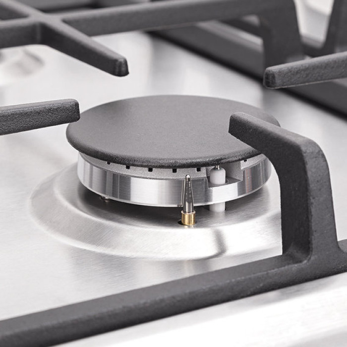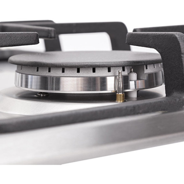 Особенность этой варочной поверхности – в отсутствии особенностей. Но в отличие от поверхности PFX 644 INOX она комплектуется устойчивыми чугунными решётками и оборудована газ-контролем.