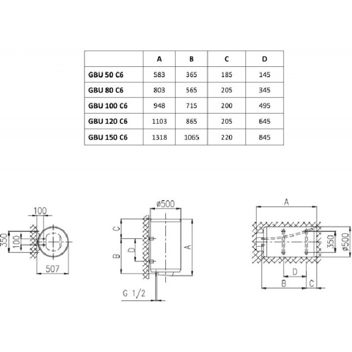 Форма бойлера - цилиндрическая, настенный, установка - вертикальная, объем - 150 л, тип ТЭНа - "сухой" (отделен от воды герметичной трубкой), количество ТЭНов - два, 2000 Вт, тип управления - механическое, сталь с эмалевым покрытием, IP 24, температура нагрева - 85 °С, 220 В, высота - 1318 мм, ширина - 500 мм, глубина - 507 мм, вес - 66 кг, белый