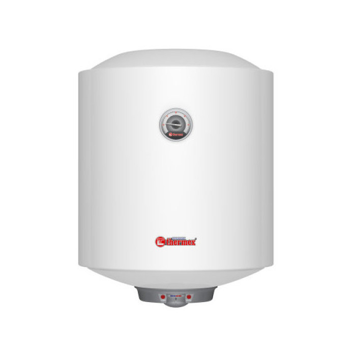Настінний водонагрівач Thermex Nova 50 V виконаний у класичній циліндричній формі та призначений для встановлення у вертикальному положенні. Він здатний забезпечити цілодобовою подачею гарячої води як у квартирах, будинках, дачах, так і в офісах та інших закладах, де для встановлення є обмежений простір. Повне нагрівання водонагрівача, об'ємом 50 л, відбудеться за 1,2 год, при цьому максимально можлива температура становить 75 град. При цьому для візуального контролю температури води в баку є стрілочний термометр, який для зручності розташований зверху виробу. За ефективність нагріву відповідає сухий нагрівальний елемент – ТЕН потужністю 2 кВт, який безпосередньо не контактує з водою. Така конструкція дозволяє збільшити площу нагрівання та знижується утворення накипу, нагрівання води відбувається швидше, а сам ТЕН служить набагато довше. Додатковим захистом бака є магнієвий анод, а надлишковий тиск води в баку скидається за допомогою запобіжного клапана.
