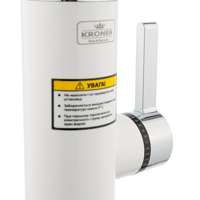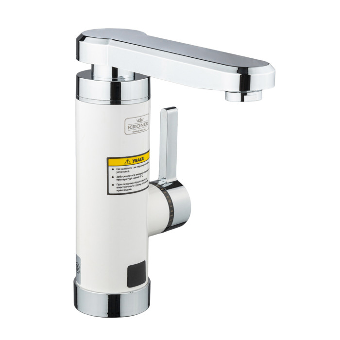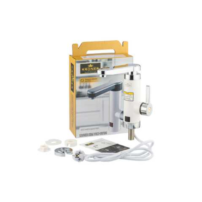 Кран для кухни и раковины с электронагревом Kroner KRM Volt-CW189 CV023242 изготовлен из латуни и ABS-пластика и имеет белый цвет. Смеситель устанавливается на одно отверстие и подключается шлангом к холодной воде (шланг приобретается отдельно). Смеситель оборудован поворотным изливом с аэратором. Также на корпусе есть дисплей, который отображает текущую температуру воды. Данный кран станет идеальным решением для дач, летних домиков или хостелов, где нужна горячая вода.