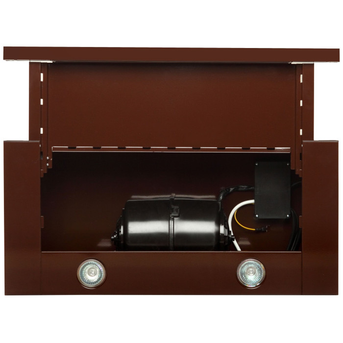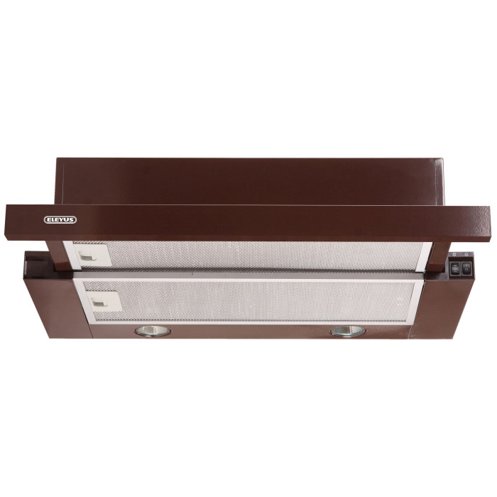 Витяжка обладнана двома галогенними лампами потужністю 35 Вт. Механічне клавішне керування витяжкою є простим, зручним та надійним. На корпусі розташовані дві клавіші - перемикач швидкостей (2 швидкості) та клавіша увімкнення/вимкнення світла.