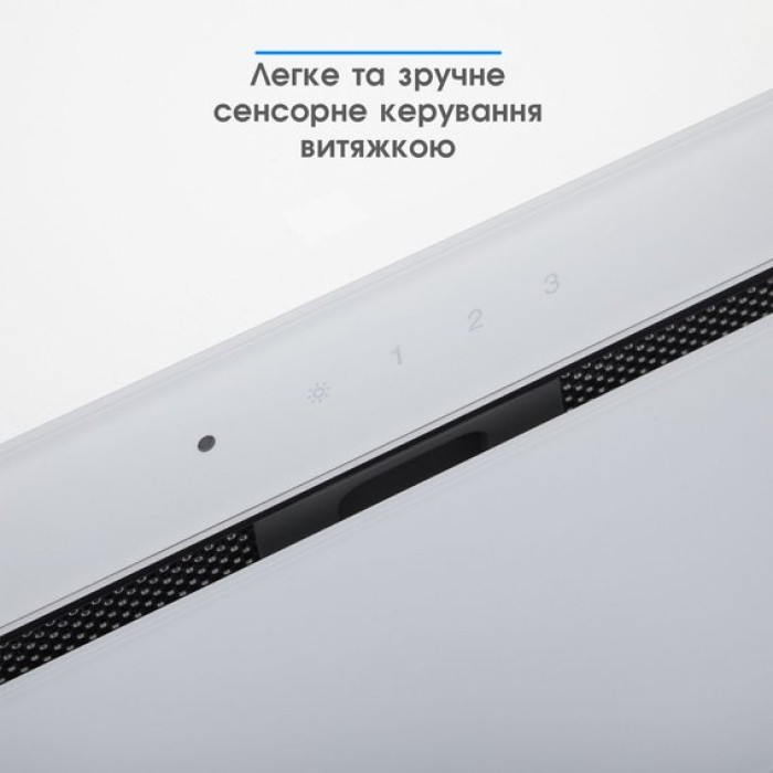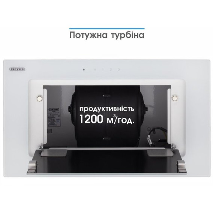 Сенсорна панель керування є вагомою перевагою кухонної витяжки ELEYUS INTEGRA 1200 LED 52. Завдяки пульту дистанційного керування вам буде легко та зручно вибирати потрібні режими роботи та освітлення.