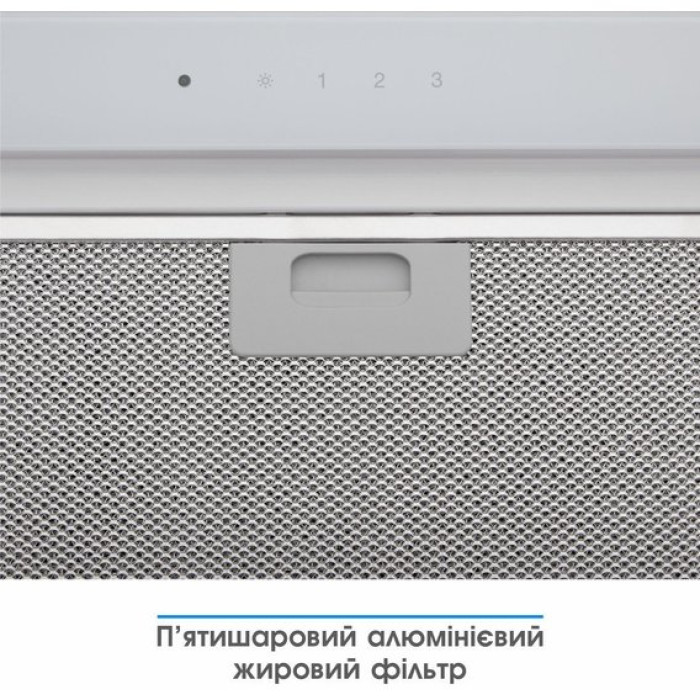 Повновбудовувана кухонна витяжка ELEYUS INTEGRA точно не залишить вас байдужими, адже вона не просто забезпечує ефективне очищення повітря від небажаних запахів, а є стильним та оригінальним рішенням для вашої кухні. Рішення інженерів-конструкторів дозволить повністю вбудувати ELEYUS INTEGRA 1200 LED 52 у кухонну шафу, не впливаючи вагомо на дизайн кухні. Очевидною залишається панель управління острівного типу із загартованого скла з дзеркальним ефектом, покрита високотемпературною керамічною фарбою, яка підкреслює лаконічність та елегантність інтер'єру.