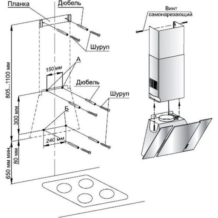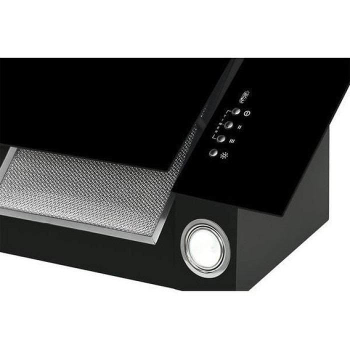 На боковой части фронтальной панели расположен блок управления, который имеет несколько кнопочных регуляторов, которые достаточно плоские, чтобы принять их за сенсорные. Эта часть вытяжки выглядит стильно и отлично вписывается в общий образ, за счет чего дизайн приобретает лаконичность и завершенность.