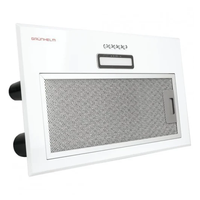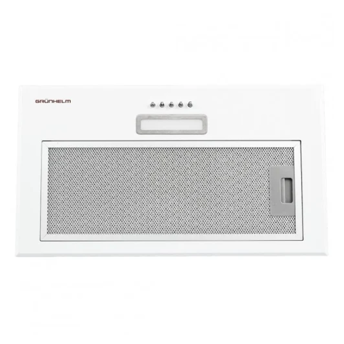 Вытяжка Grunhelm GVC 620 W - это компактное встраиваемое устройство для отвода воздуха с простым кнопочным управлением. Мощность двигателя 65 Вт с производительностью 650 м³/ч. Подсветка представлена одной лампочкой 2 Вт, в общем потребляет вытяжка совсем немного.
